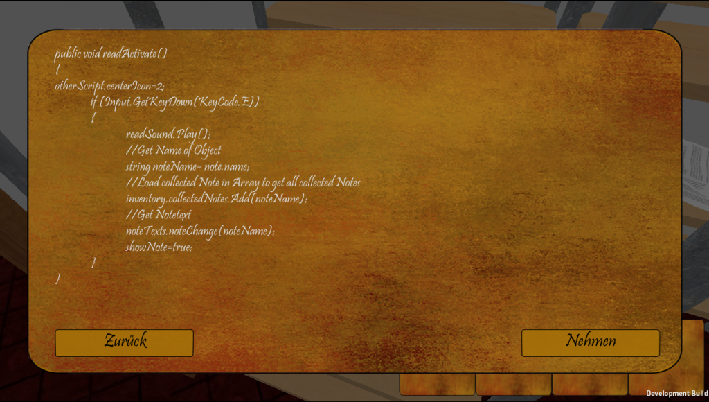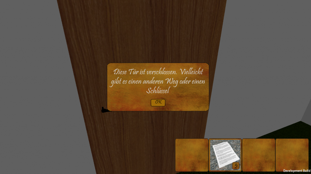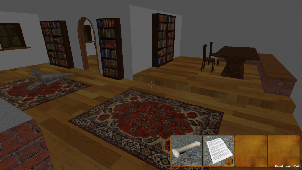 I created an adventure game called „Mystery House“ for the final assignment in the course „Game Engineering“ in the winter semester of 2014/15. I got Inspiration from „Gone Home“ from The Fullbright Company. We got a checklist which had to be accomplished to complete the course. All models and the programming were made within about two months but it was during the semester. This game was made with Unity Version 4.