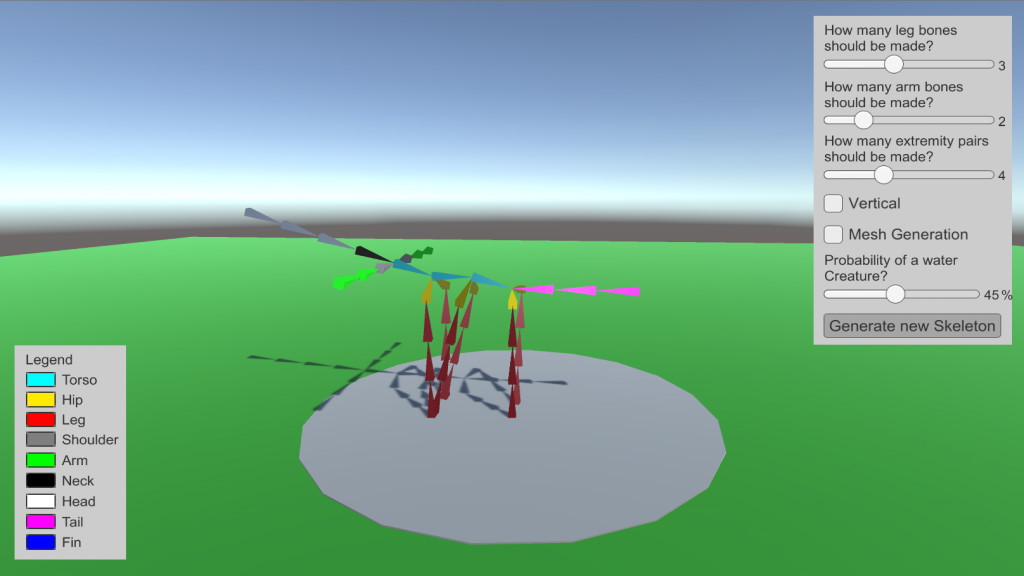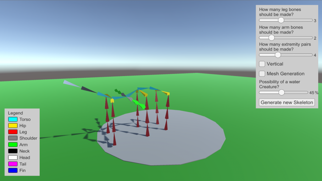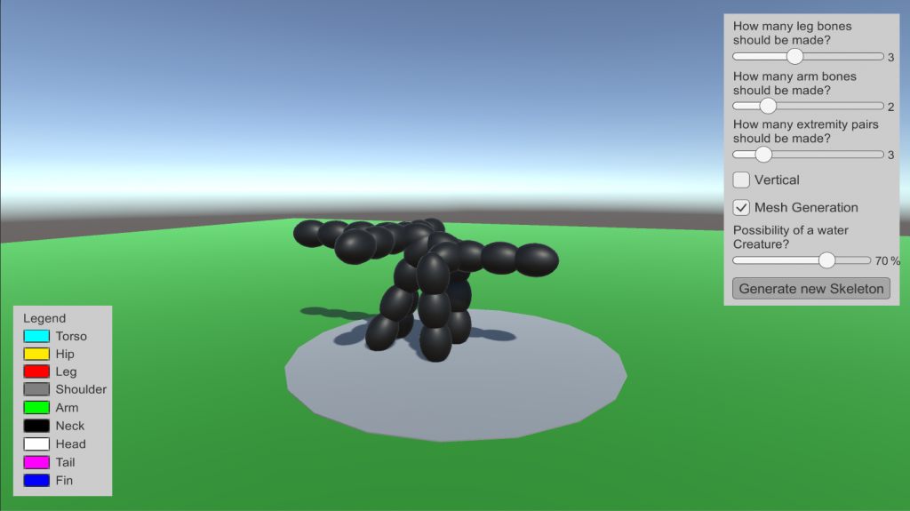 Thesis The topic of my master’s degree was „Procedural character generation“. I developed a prototype for a tool to generate different creatures with specific variables. Code Sample Impressions